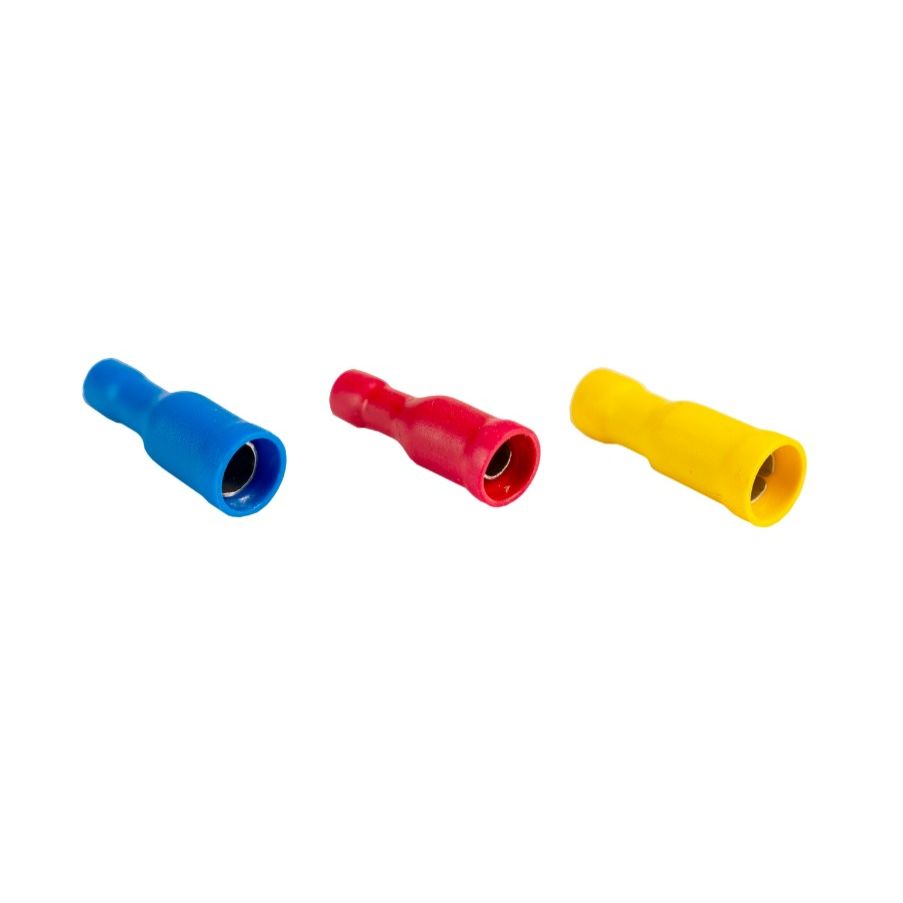 Terminal tipo bala hembra para cable de calibre de 22 a 10 AWG.