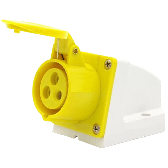 Toma de sobreponer amarilla de 16 y 32A de 100-130V 2P+T